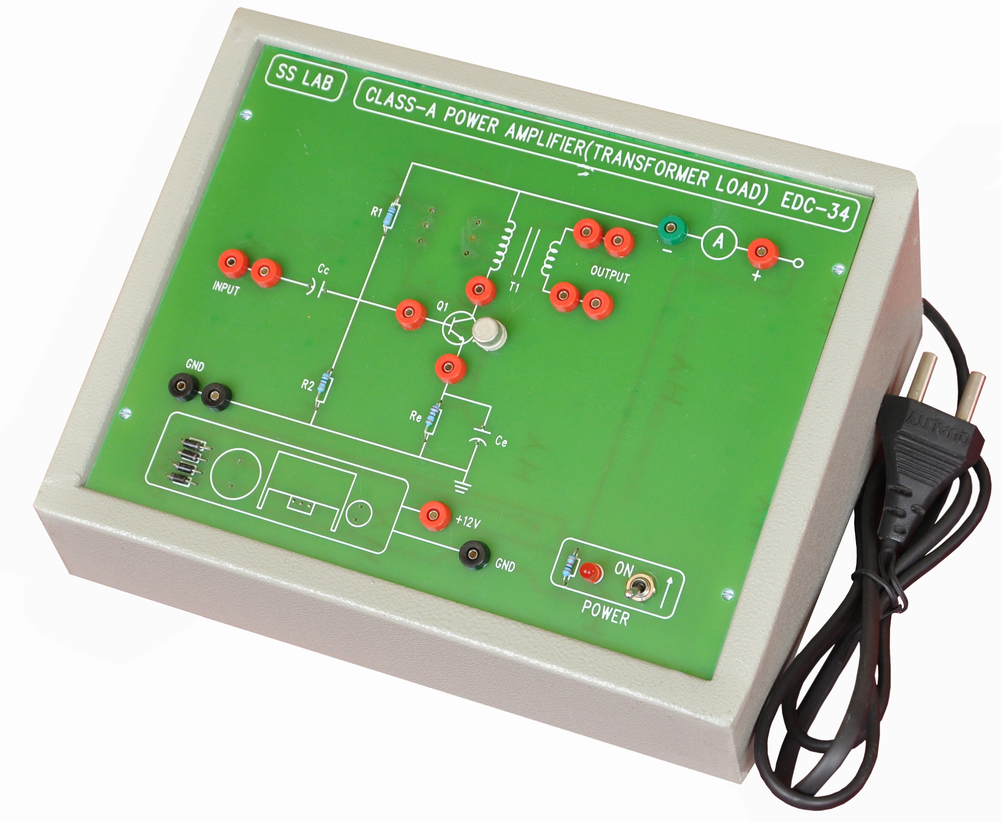 Amplifier circuit is constructed with two power amplifiers Class-A, class-B with collector transformer load and built in Speaker.