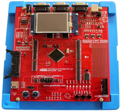 On board power supply connector and 26 pin FRC connector are available for interfacing the GSAS LPC 2929 board to some of the Interface Modules such as Seven Segment Display, Elevator, Traffic Lights, Dual DAC, Txdr ADC etc., enables the user to develop and debug code for the GSAS interface modules.