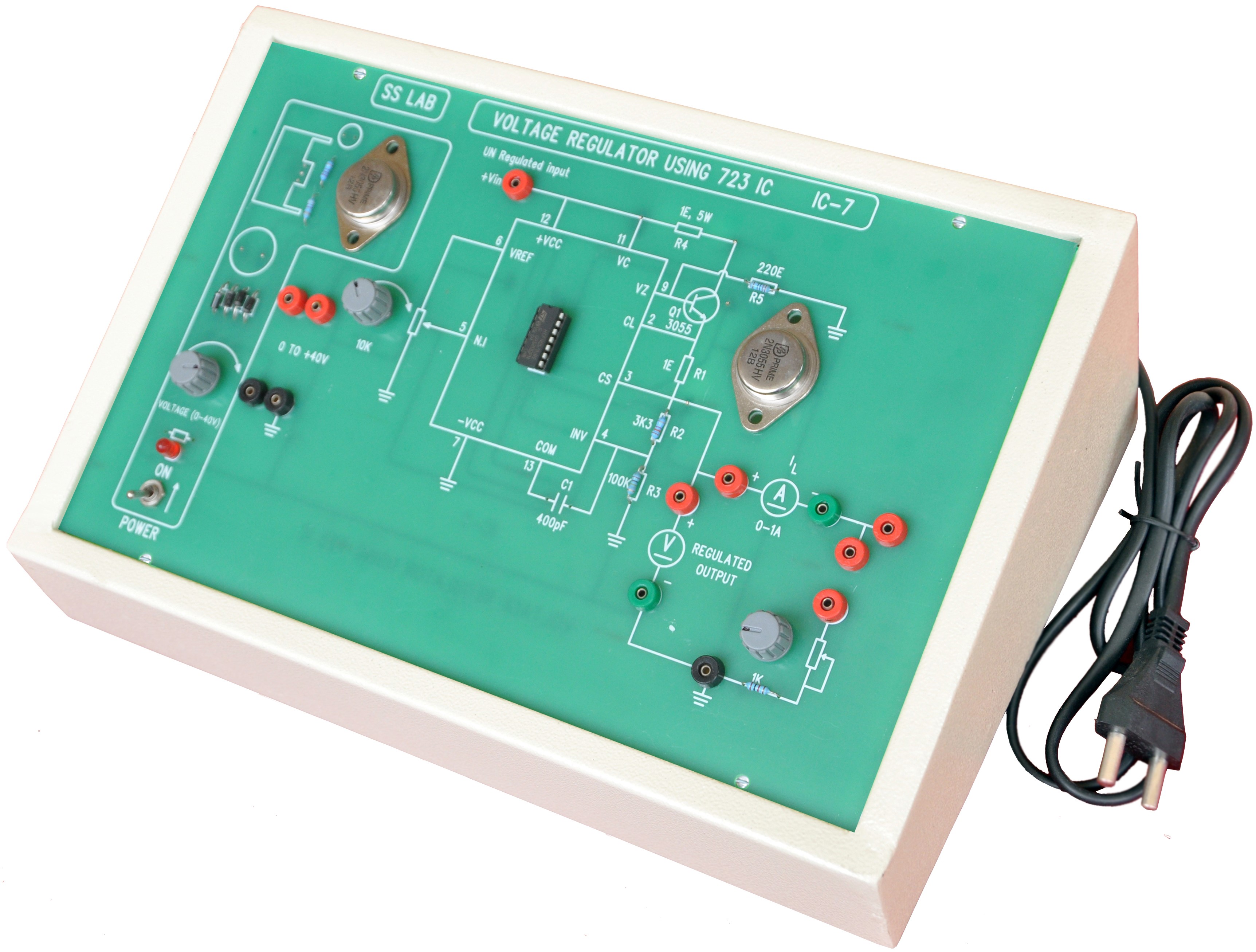 Variable regulated power supply of 0-3V @ 250mA. 2nos , Op-Amps provided on board single Op-Amp using 741 IC.