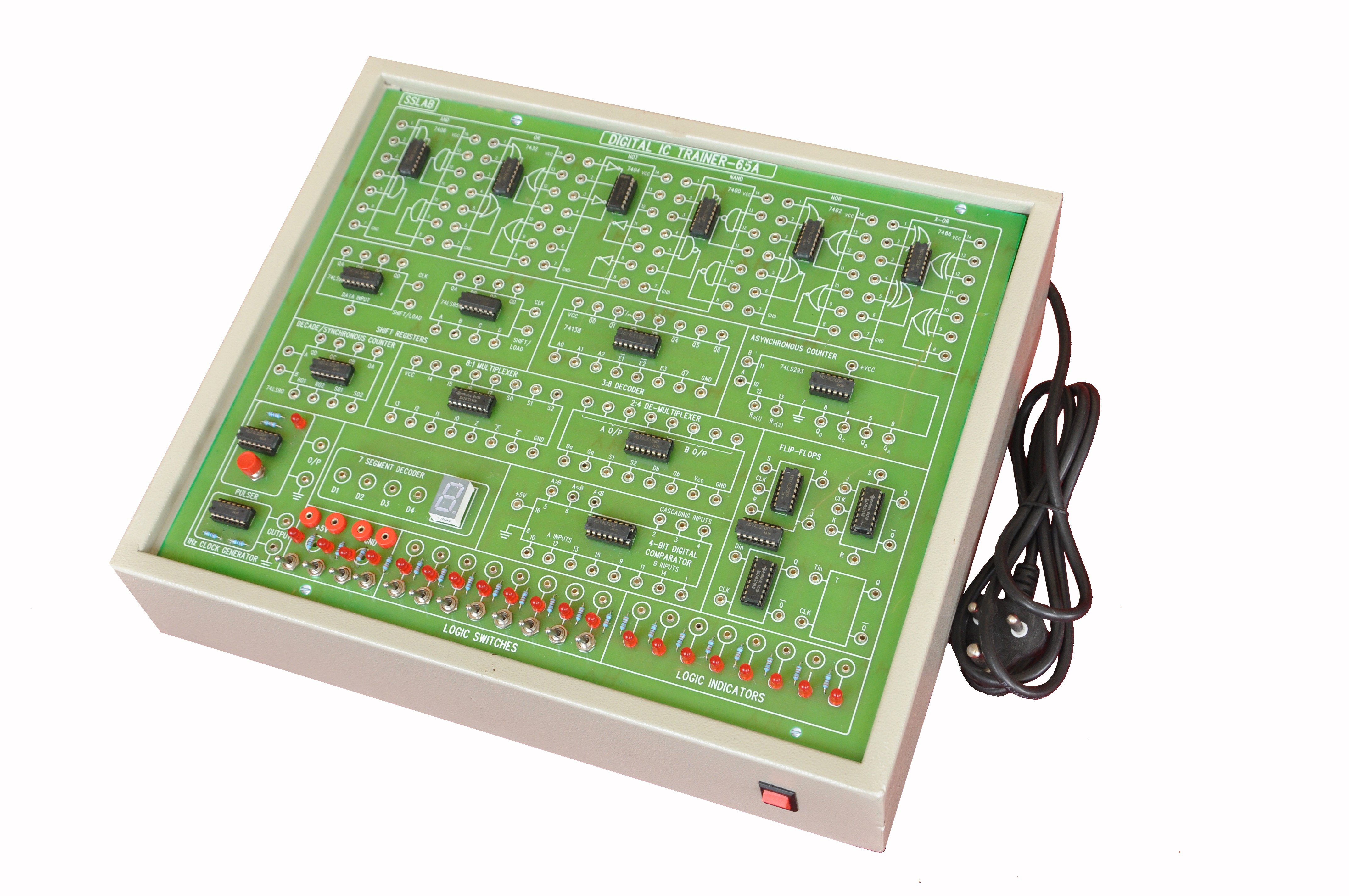 This Circuit designed with Ex-Or, AND, OR gates with on board 6 no�s, of Logic Inputs and 6no�s of Logic outputs.
