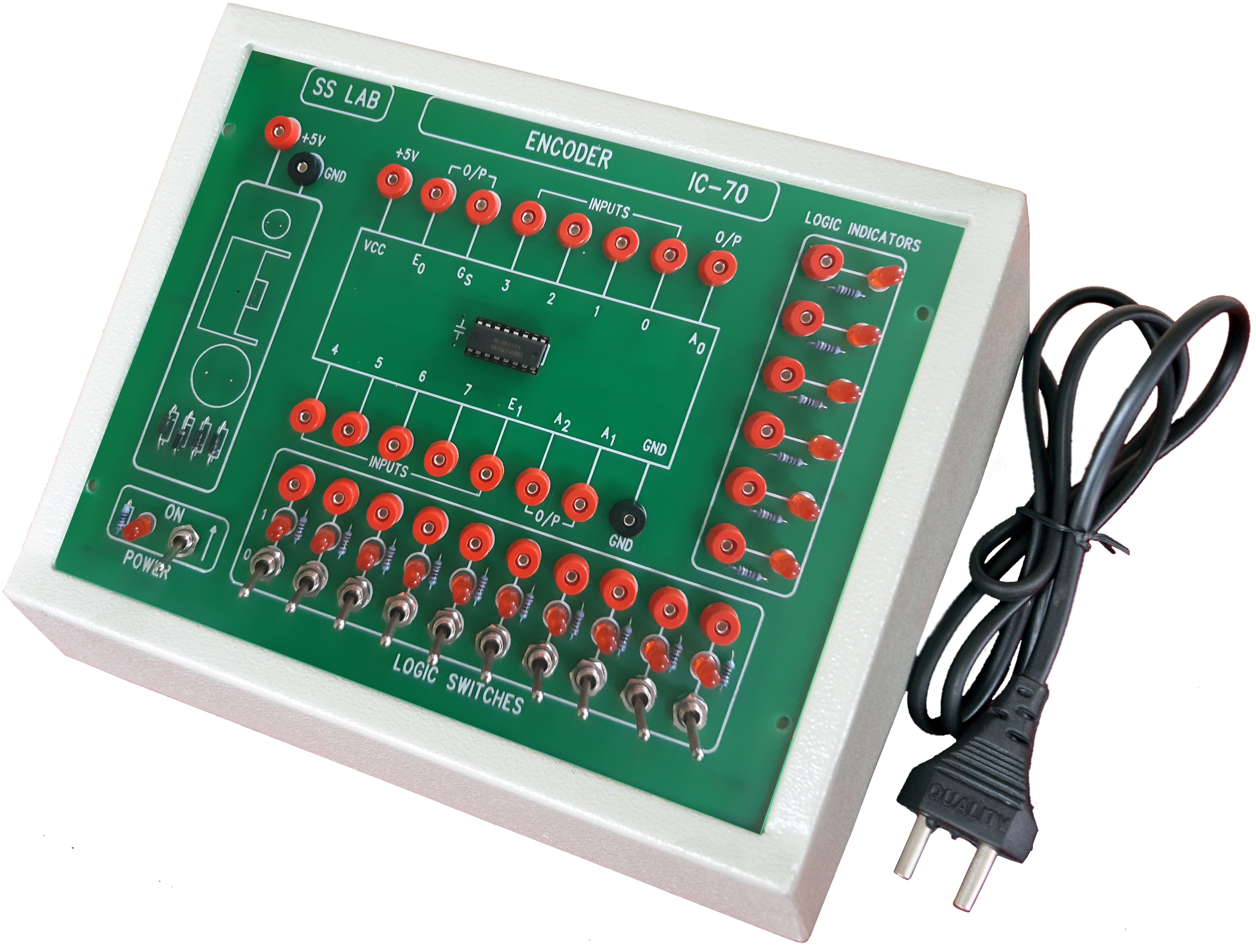 The circuit Design with IC 74LS 148 ,74LS 138 unit Consist of 12 no�s of logic inputs Indicator and 10 nos of logic output LED displays.