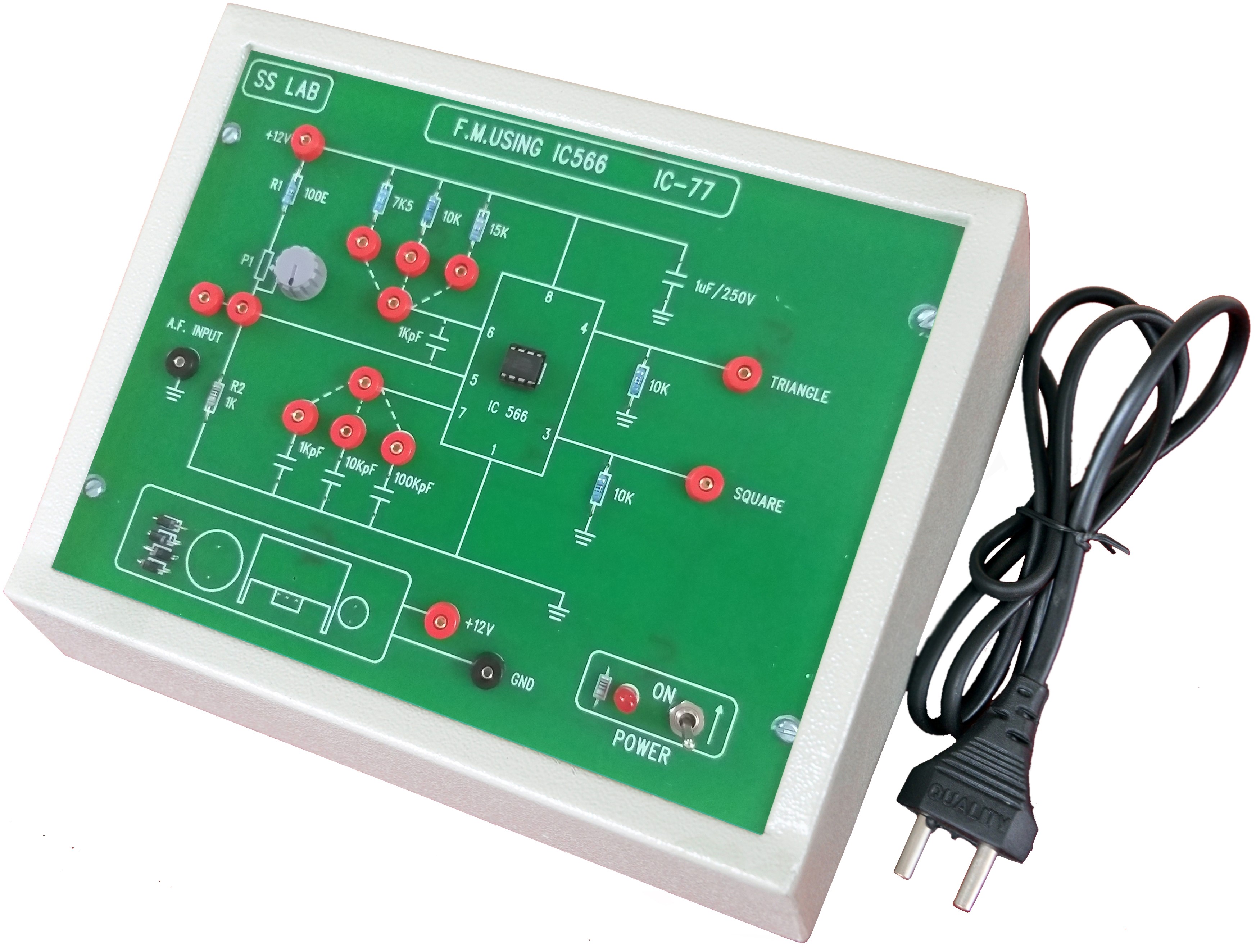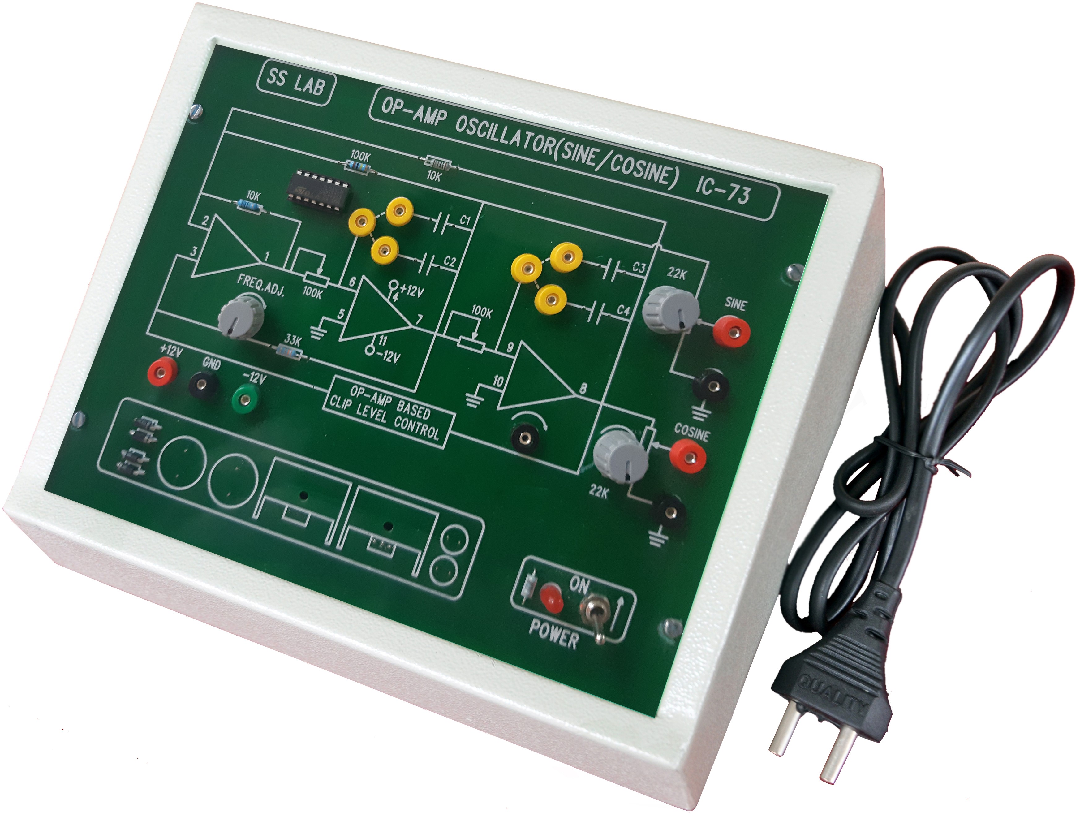 This unit consists of Op-amp circuit with Different values of resistors, capacitors and one 100k? potentiometer provided to vary different output frequencies.