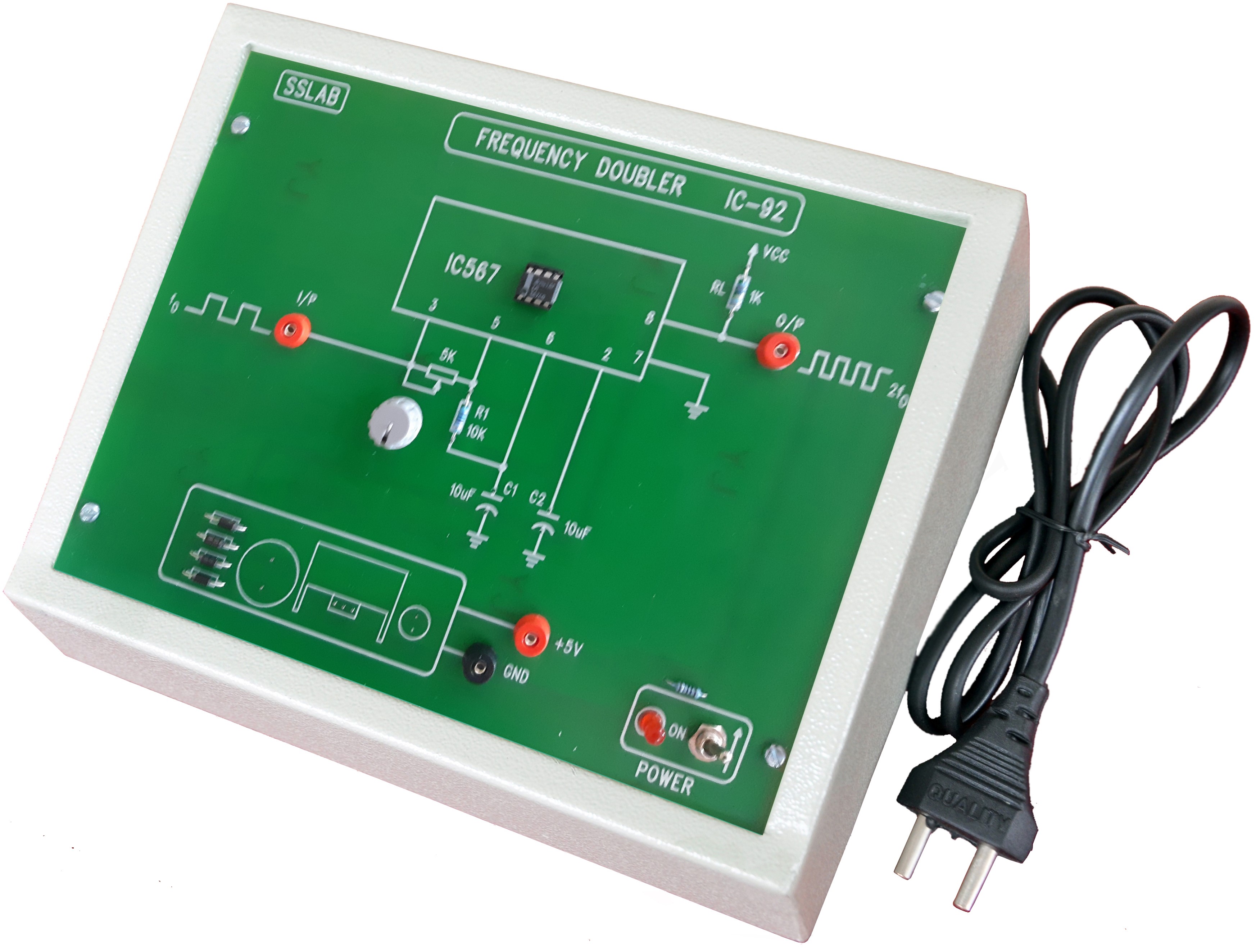 Different values of capacitors and resistors, diodes to construct different circuits provided on board. One 10k? potentiometer is provided on board.