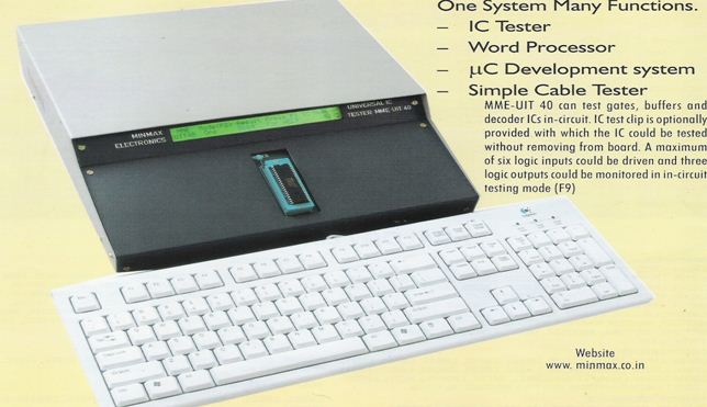 | MME-UIT 40 has facility for expansion of test library through RS232C serial interface. If the data sheets of the new IC is furnished along with sample ICs, we could develop the testing program if the IC is testable in MME-UIT 40, after downloading this test program in MME-UIT 40, the new IC could be tested. |
