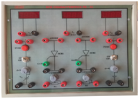 • This equipment should consists of  One NAND gate based driver circuit is provided.  Two switches are provided for the NAND gate input.  One MOSFET is provided for power circuit.  Internal DC voltage 5V is given to connect a load. Rating of Devices: MOSFET: IRF 740, 16A, 600V