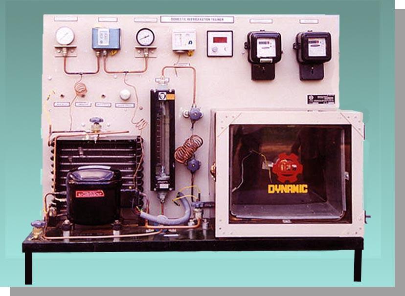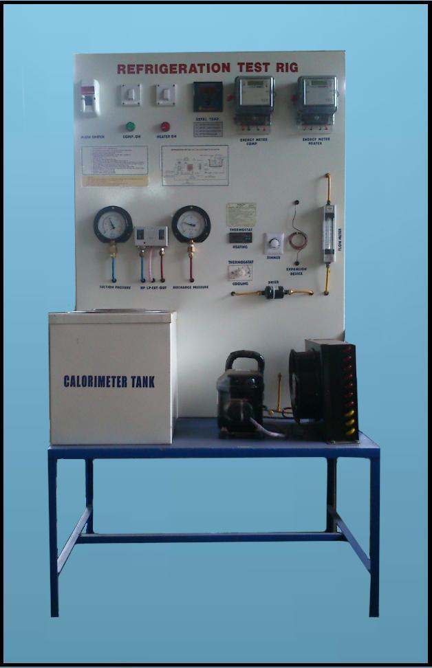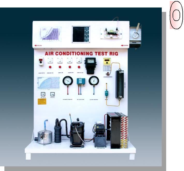 3.Condenser - Finned tube, air cooled, with fan. (Note-Water cooled condenser can be provided, on request instead of air cooled condenser. Water cooled condenser facilitates measurement of heat rejected to the condenser.)